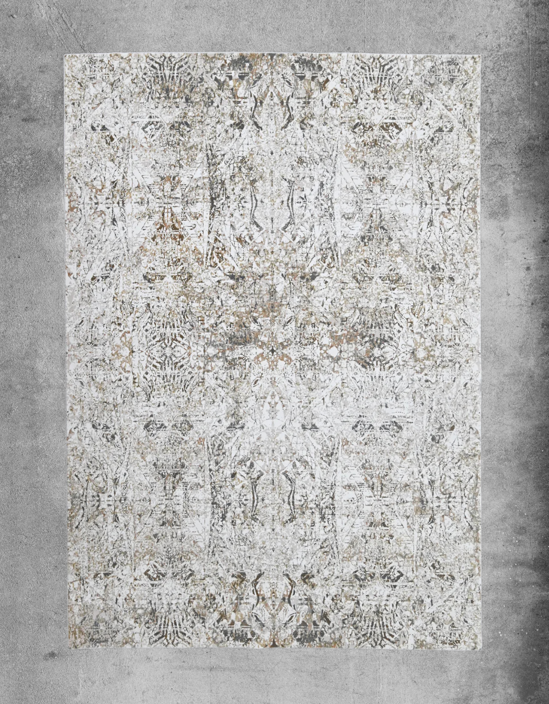 The Antique Mirage – Beige Reflection carpet is a stunning fusion of timeless motifs and contemporary abstraction, artfully crafted to evoke the allure of vintage craftsmanship with a modern twist. The surface features a weathered, symmetrical pattern that echoes the detailing of faded oriental rugs, yet the distressed finish and muted tones bring it into the realm of modern elegance. Beige, cream, stone grey, and hints of charcoal are blended seamlessly, creating a balanced, neutral palette that pairs effortlessly with both classic and contemporary interiors.