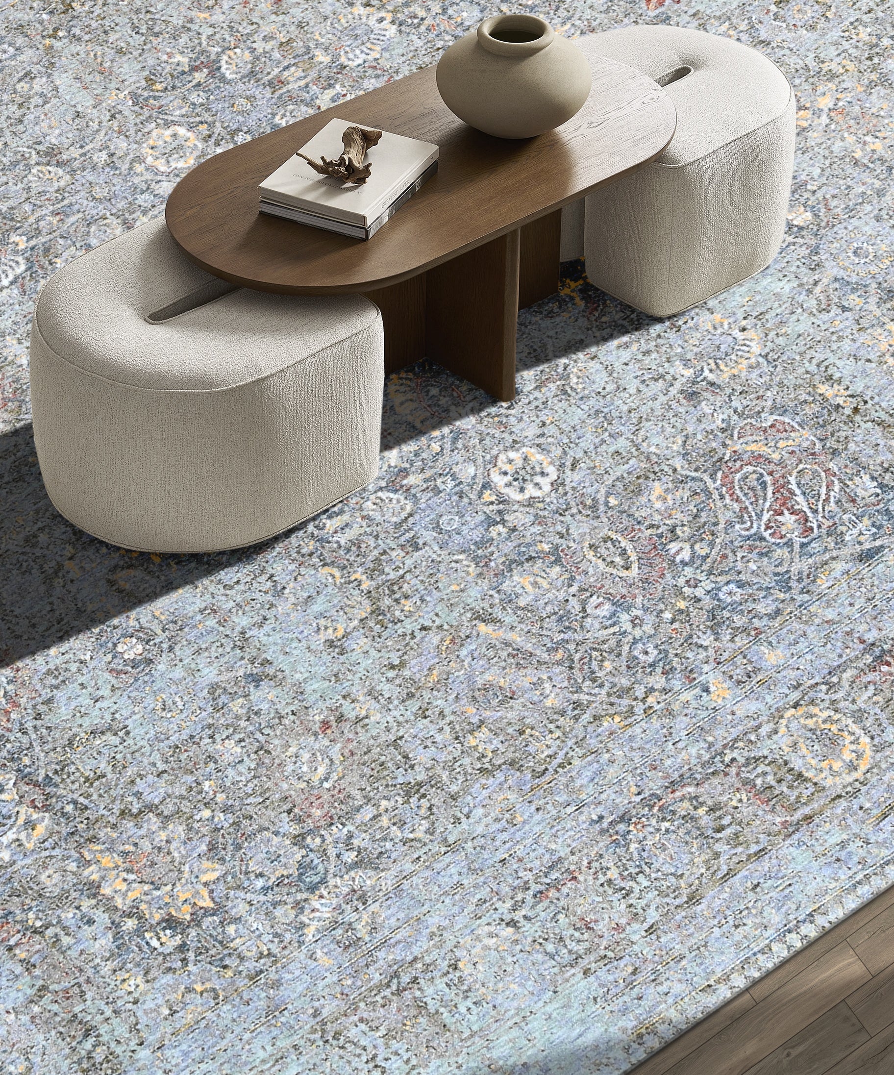 The delicate interplay of colors, enhanced with a subtle sheen, brings depth and dimension to your space, effortlessly complementing a variety of décor styles. Whether placed in a grand living room, an intimate sitting area, or a luxurious bedroom, the Celeste Luxe Rug exudes an air of understated elegance. Designed for easy maintenance and longevity, it resists fading and wear, ensuring that its beauty endures over time.
