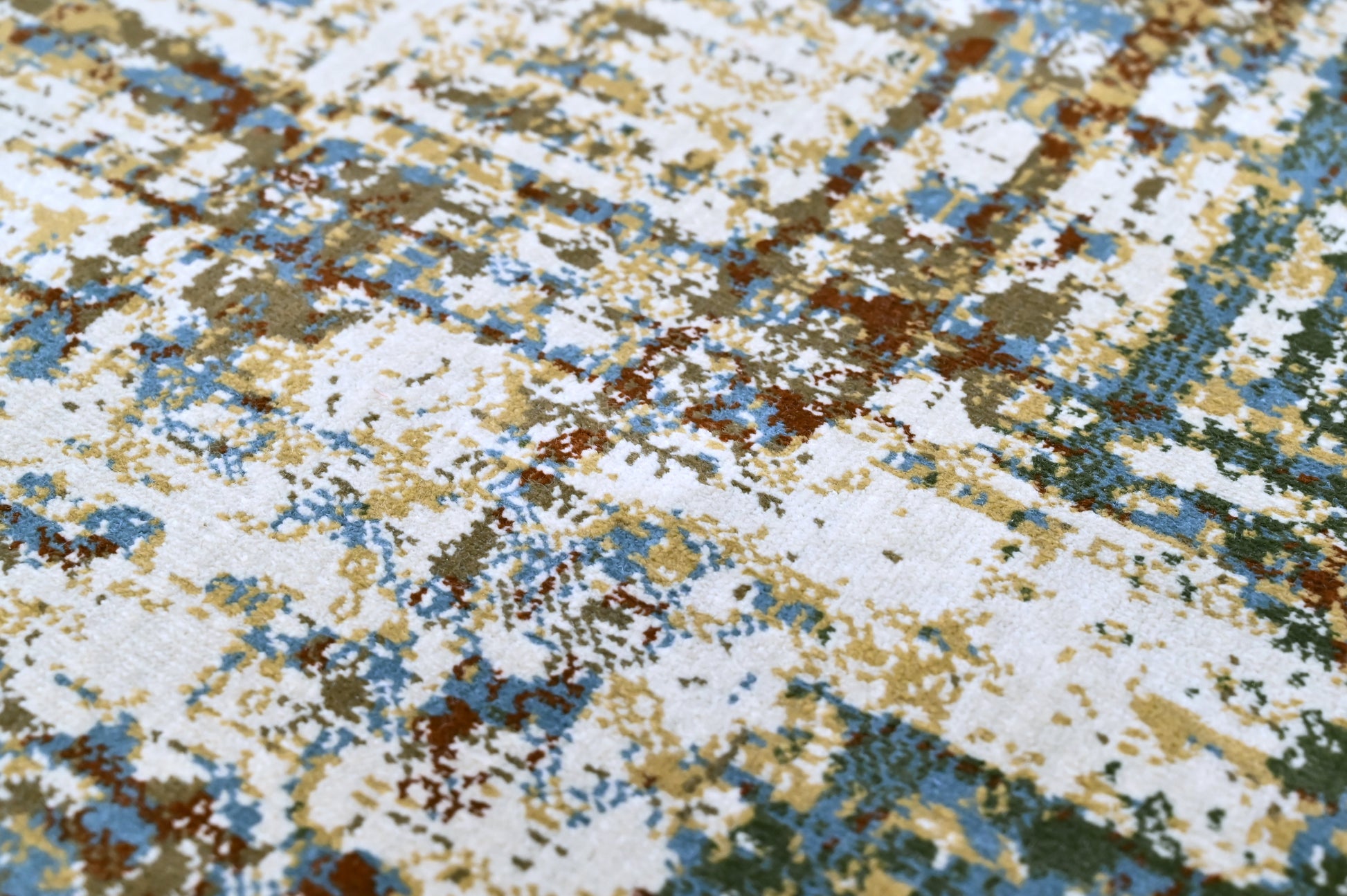 The Delphi Rug is a contemporary masterpiece that blends a sophisticated color palette with an abstract design, making it the perfect choice for modern interiors. Featuring shades of light blue, beige, rust, and hints of grey, this rug brings an artistic yet subtle appeal to any space. Its distressed finish adds depth and character, creating a lived-in, cozy aesthetic that enhances the ambiance of living rooms, bedrooms, or office spaces.