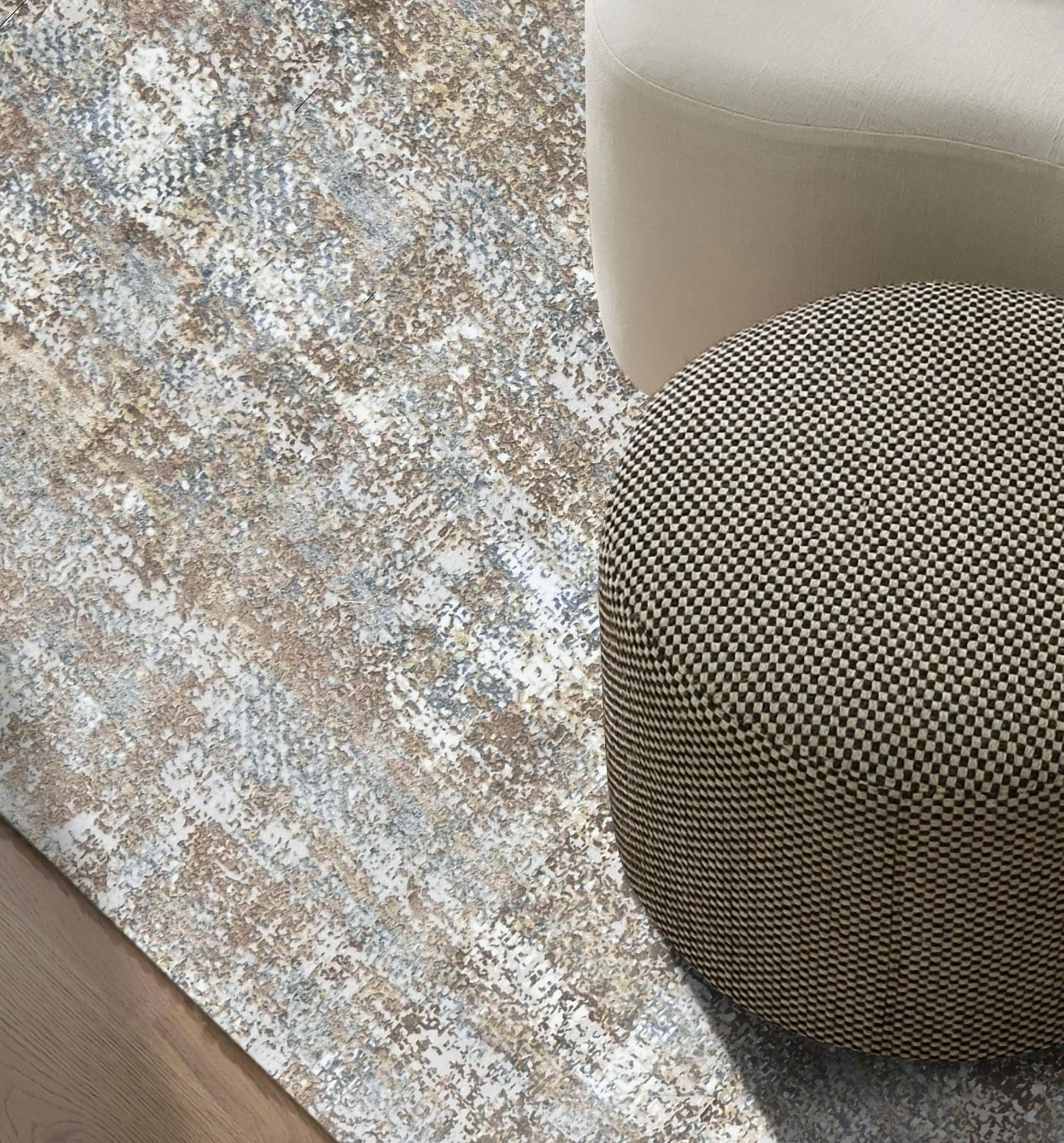 Earthbound Elegance is a true homage to nature’s organic beauty, capturing the essence of weathered landscapes, sunlit meadows, and the quiet sophistication of earthen textures. The harmonious interplay of muted browns, soft grays, and delicate ivory hues evokes the subtle, timeworn beauty of nature’s finest elements. This abstract design seamlessly blends contemporary artistry with rustic charm, making it a versatile addition to any interior space. The intricate detailing and distressed patterns lend a sense of depth and character, creating a visual story that unfolds with every glance.