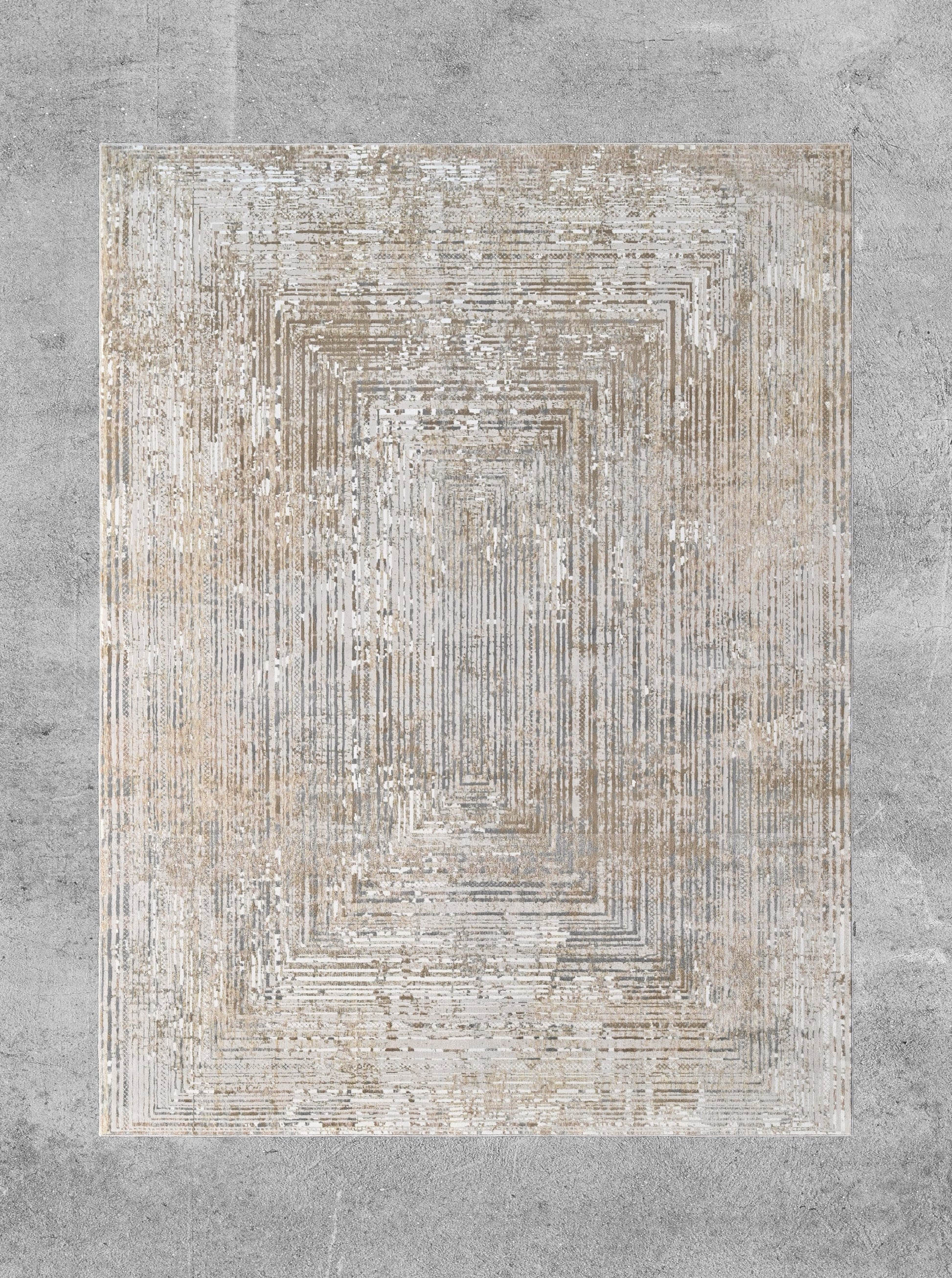 Earthbound Horizon is a masterful fusion of natural elements and contemporary aesthetics, evoking the raw beauty of sunlit landscapes and weathered terrains. The intricate design reflects the organic patterns found in nature, reminiscent of aged rock formations, wind-swept earth, and the layered textures of time-worn surfaces. A blend of soft neutrals, earthy browns, and muted ivory tones creates an effortless harmony that seamlessly integrates with both modern and rustic interiors. The distressed, abstract motif captures the essence of nature’s imperfections, delivering an understated elegance that transforms any space into a sanctuary of warmth and tranquility. Whether placed in a minimalistic urban loft, a nature-inspired retreat, or a refined contemporary home, this carpet serves as an artistic foundation that enhances the character of its surroundings.