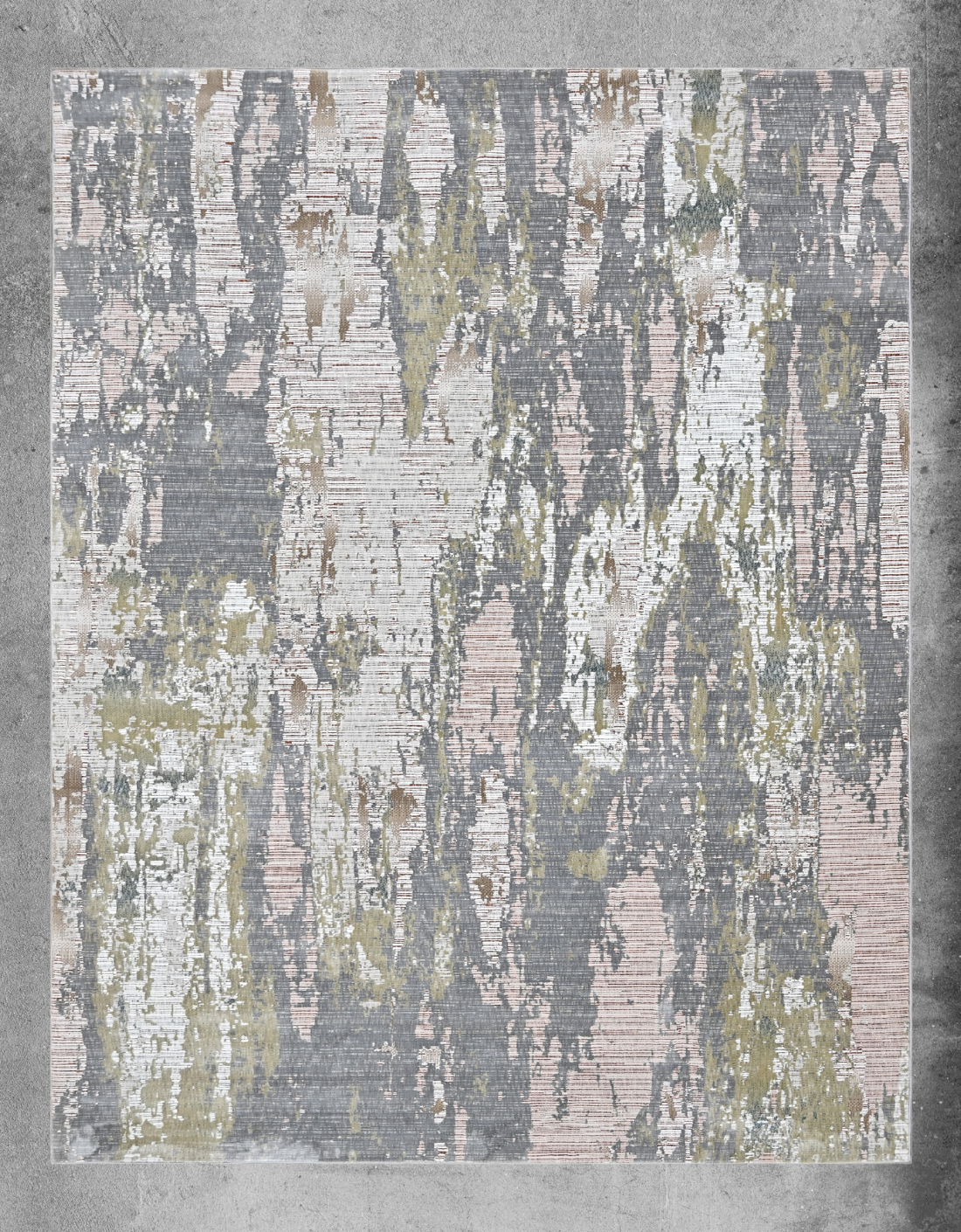 The Granada Echo Powerloom Rug layers soft rust, muted olive, and weathered grey in an abstract composition reminiscent of aged stone walls and timeworn frescoes. Its organic pattern feels like nature reclaiming architecture, creating a balance of history and renewal.
