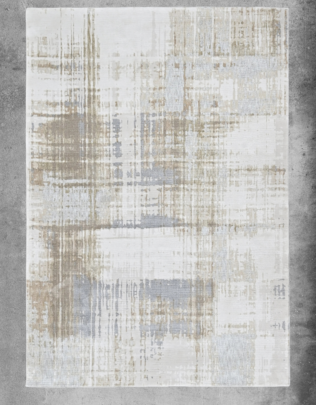 The Linen Drift Powerloom Rug captures the airy elegance of natural linen with its soft blend of beige, ivory, and muted grey tones. Its abstract, crosshatched pattern evokes the gentle texture of handwoven fabric, bringing a sense of calm sophistication to any space.