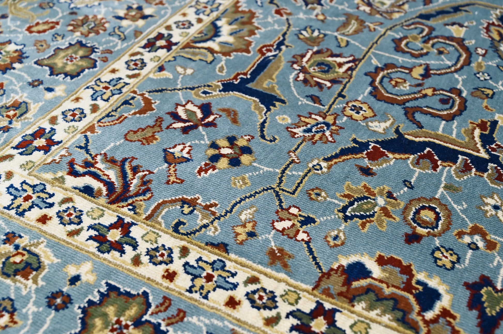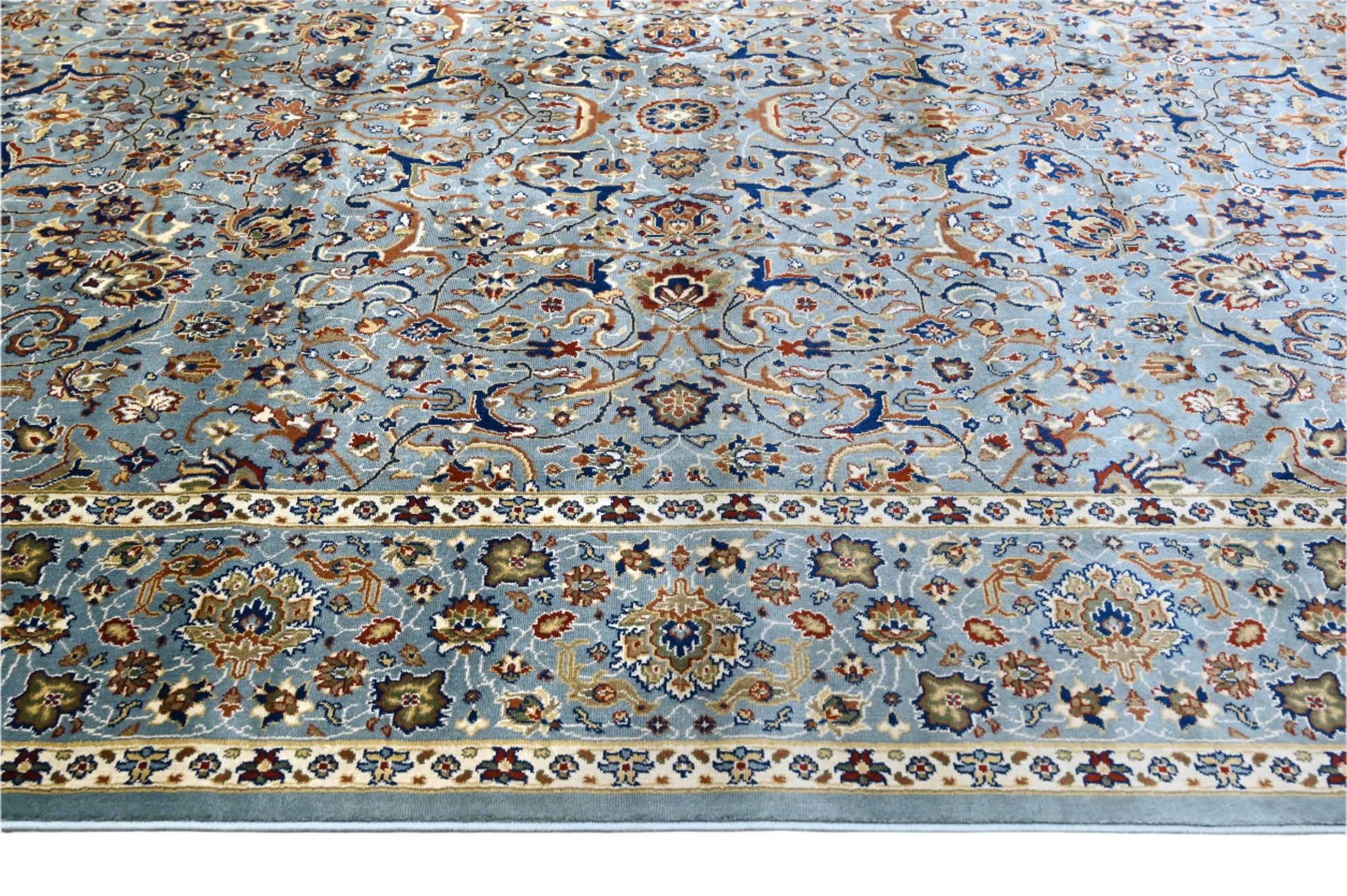 This intricately designed rug brings timeless charm to your living space with its detailed patterns and refined borders. The delicate floral motifs and balanced composition make it a sophisticated addition to any home.