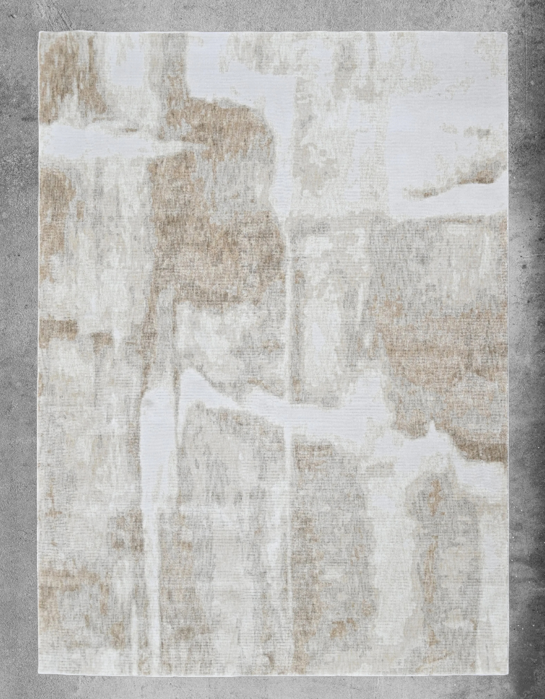 The Paloma Sand Powerloom Rug showcases a soothing blend of beige, ivory, and soft taupe in an abstract, stone-textured pattern. Its gentle, organic design adds warmth and visual interest while maintaining a calm, neutral aesthetic that complements a wide range of interiors.