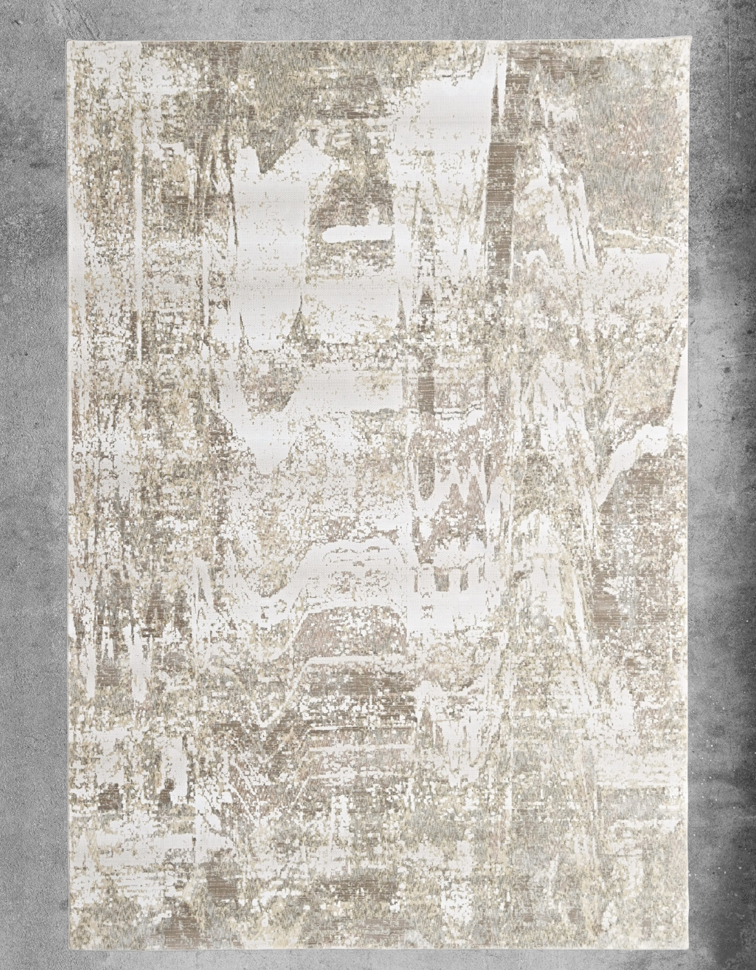 The Sandstone Mirage Powerloom Rug captures the calming essence of windswept deserts, with beige and ivory tones gently blending into misty gradients. Its abstract yet soothing pattern feels both organic and refined, echoing landscapes softened by time and light.