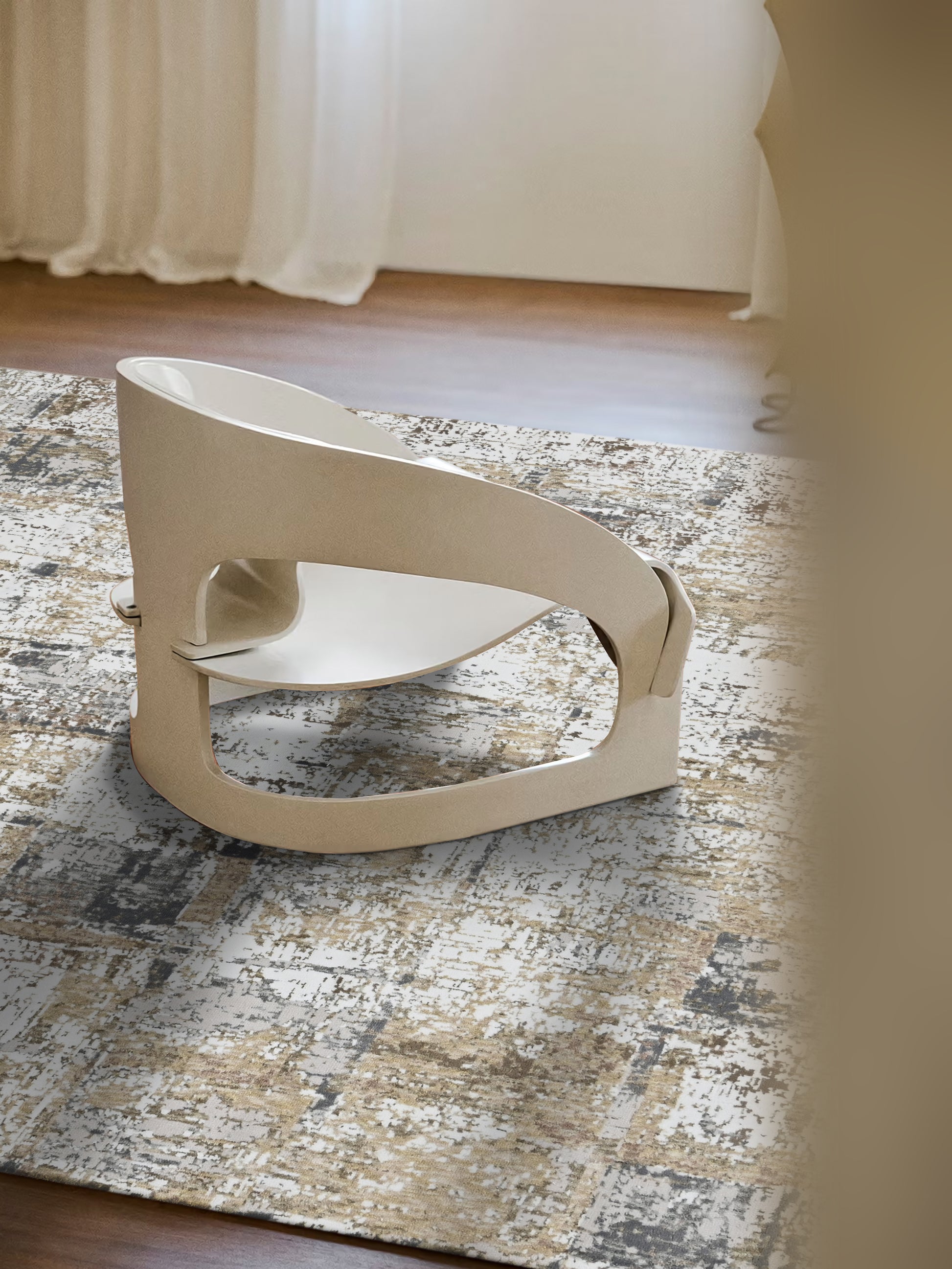 Serene Terrain is a masterful blend of organic inspiration and modern artistry, designed to bring the essence of nature into contemporary living spaces. Its intricate design mimics the rugged beauty of weathered stone pathways and sun-kissed landscapes, capturing the soft interplay of earthy tones, muted ivory, and hints of slate blue. The abstract pattern is reminiscent of natural textures, evoking a sense of harmony and tranquility. The carefully distressed detailing adds a refined, time-worn charm, ensuring that this carpet serves as both a grounding element and a statement piece in any room.