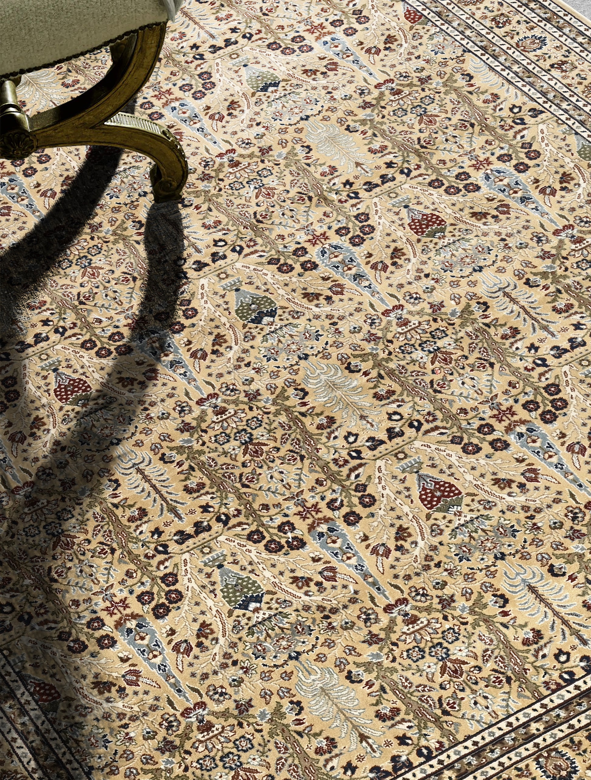 Made from high-quality polyester, this rug offers the perfect balance of durability and a soft, luxurious feel underfoot. Precision-woven using advanced powerloom technology, every detail is meticulously rendered to ensure long-lasting beauty and intricate craftsmanship. The delicate motifs and ornate borders lend a sense of heritage, making it a versatile addition to both modern and classic interiors.